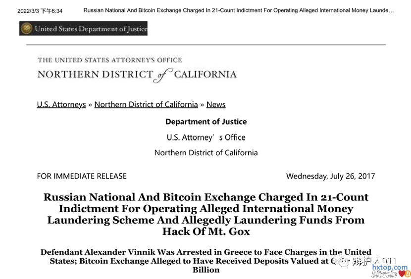 美国司法部的起诉书显示,比特币交易所BTC-e的建立与俄罗斯人维尼克有密切关系。