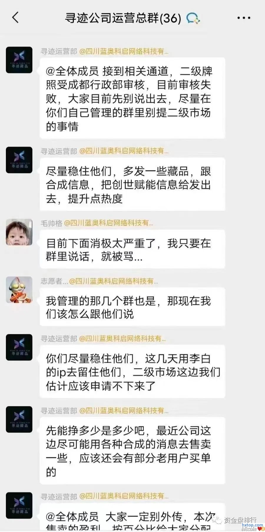类似ibox平台的图片都是炒作,大家赚的谁的钱应该心知肚明。总有人要接盘。看一下寻迹藏品公司的聊天记录,因二级牌照申请不下来,然后准备发行更多的藏品让大家接盘,意思先把钱赚了再说。你说黑不黑心,藏品无限发行,韭菜真金白银来接盘。还以为自己能卖出高价。