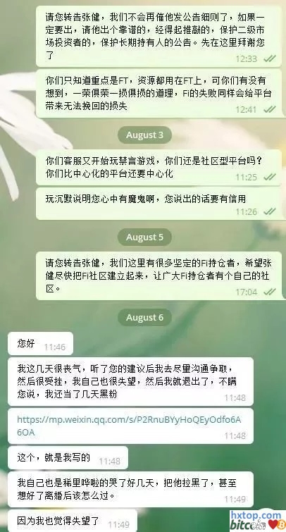社区内,有人吐槽他,不久后可能会推出聊天挖矿、爆仓挖矿;有人说闻到了 FCoin 宣传方向上带着一股传销味;也有人提及,他在各群推广 FT 时,基本上都有人回他一句,FT 就算了吧。