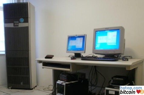 机房一角,就是这两台机器折腾了两天 X48 的主板,一片5870,2片6750。5870接在1x上,水冷;两片6750插16x,风冷,加一个风扇给6750送新风。电源是京东上特价的振华战蝶550
