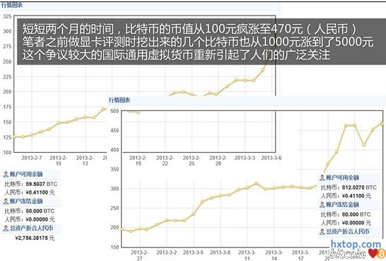 通过诸位DIY硬件编辑内部聊天来看,很多人对比特币这种凭空创造出来的货币持怀疑态度,笔者虽然对比特币小有研究,但也没有料到其涨幅会如此之大。(否则前期买入比特币岂不是赚大了?) 当然,投资比特币和投资股市、外汇等一样存在很大的风险,这里笔者并不建议对比特币不甚了解的人去盲目投资。而是通过另一种非常安全的“无本生意”——用显卡去挖一些比特币,随着比特币的升值,您挖出来的比特币兑换成人民币也不少,起码够交电费、网费、甚至把显卡的钱也能赚出来。