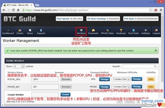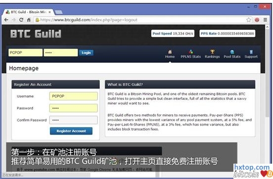 首先,需要找一个操作方便产出稳定的矿池,矿池的作用就是为各个终端细分数据包,可以通过精密的算法将终端计算好的数据包按照比例,支付相应数量的比特币。 笔者一直用的是国外BTC Guild矿池,现在国内也有很多矿池了,有兴趣的朋友可以去慢慢研究,对比各个矿池的产出和收益差距。而新手可以按照笔者的教程在这里快速上手,去挖到第一桶金。