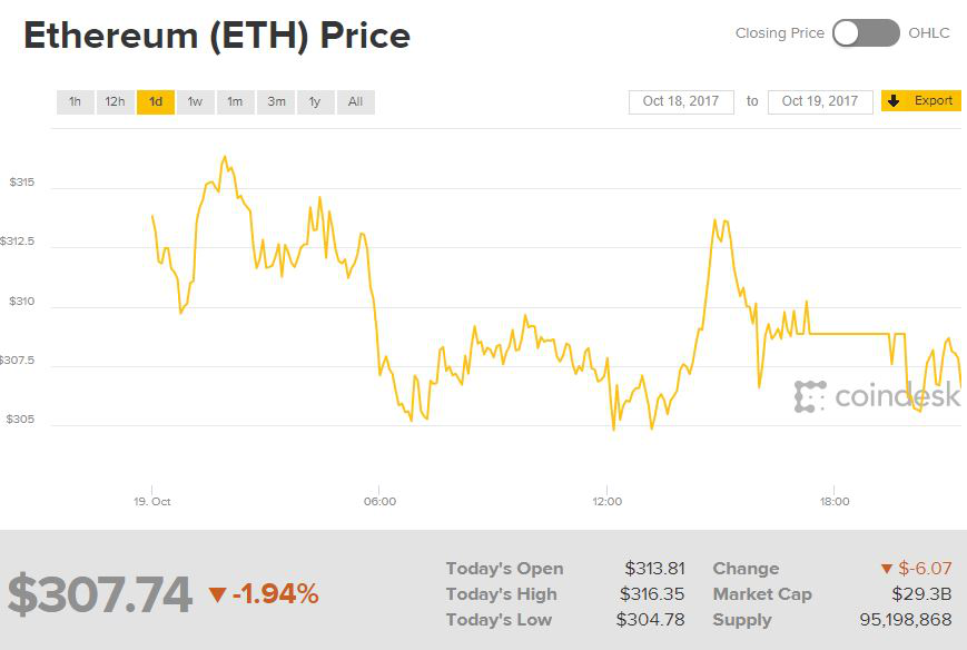 据Coindesk数据,负面消息也带动以太币下跌2%。