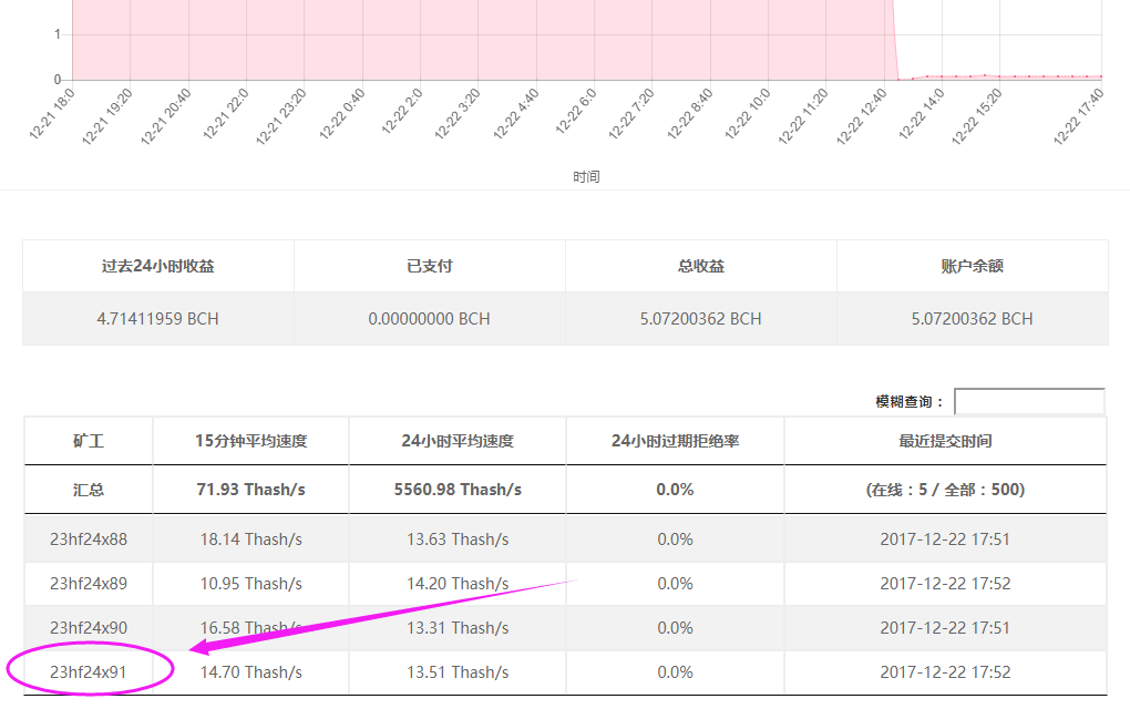 进入算力和收益监控网页。另外,请到VVPool官网查看BCH支付说明,0.1BCH起付。: