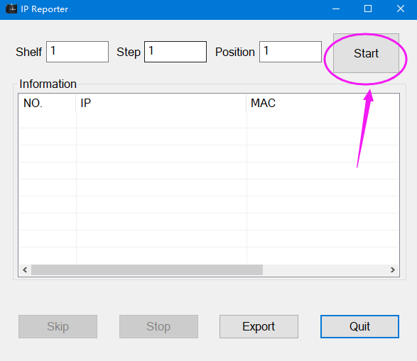 点击"Start",然后按住矿机的IP Reporter这个按钮,按一秒之后松开。