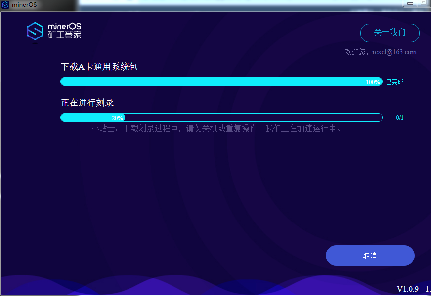 3、点击“快速刻录”,登录minerOS账号 填写好账号、密码以及验证码后,点击“登录“。