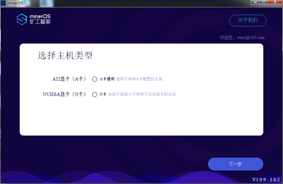 4、选择主机类型 登录成功后,选择主机类型,选定后,点击“下一步”