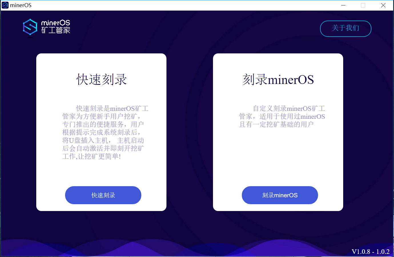 1、安装minerOS系统工具: 下载minerOS系统工具Windows版本安装包:minerOS_setup_win_1.0.13.exe 2、安装并打开系统工具 系统工具下载好以后,双击EXE文件会自动安装,安装完成后会自动打开。我们会看到这个画面: