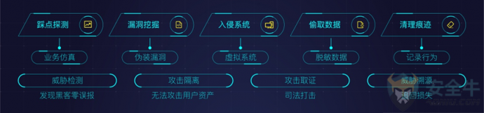一体化资产管理与安全监控平台主要设计思想 通过这样的资产管理平台可以从资产发现、资产漏洞安全管理、外部信息泄露等多个维度针对企业资产进行更为细致的管理与防护,可大幅降低企业内部未登记在案的边缘资产被黑客用作跳板进行内网攻击的可能性,显著增强企业资产层面的安全能力。 2. 兵来将挡,水来土掩 通过上述的资产安全能力建设,我们在内网资产层面的安全已经得到了一定保证。可你是否想过?一旦企业的安全边界能力被黑客攻破或者绕过,即黑客已经成功进入企业的内网并开始恶意行为了,企业要如何第一时间感知这件事从而进行应急处理? 现今主流的安全防御机制,往往由防火墙或NGFW、入侵检测、网闸及防毒软件建构其核心检测能力,这些产品依靠已知攻击特征码进行模式匹配来检测已知的网络攻击,在一些特定情况下,也可能检测针对已知漏洞的新的未知攻击。 这样的解决方案,能非常有效的监测到一般的已知网络攻击,但针对现今最具威胁的高级可持续威胁和东西流量安全,却完全没有招架之力。在大多数情况下,APT攻击面对传统的安全防御机制时,有如入无人之境,因为这些攻击没有特征码,故传统的防御机制无法检测攻击者在起始阶段所采取的攻击手段,最终导致网络攻击者可以任意的控制网络。 一些防护更深入的传统方案,会结合IPS(入侵防御系统)或者NBA(网络行为分析系统)产品进行异常检测,协助找到网络攻击,这种方式虽然可以侦测到新型的APT威胁,但是由于经常受到误报的影响(将正常流量归为异常),因此防御效果不佳,并且也容易出现漏报的问题。 在此背景下,根据大部分企业当前安全形势,建议针对性建设入侵感知能力以及攻击者溯源能力,通过一个默认所有边界安全手段都有可能被绕过的视角建设安全的最后一道防线,即在攻击者成功入侵后实时感知并尝试进行攻击流量隔离、转发,记录攻击行为,从而实现入侵感知、相应、降低损失以及事后溯源的全套入侵感知与溯源体系建设。 根据大部分企业当前安全能力,结合攻击者常用的攻击流程,建议企业在IDC、办公网等内网环境设计如下基于攻击欺骗的入侵感知与攻击溯源体系。 通过蜜罐组网、蜜罐诱饵实现高精度蜜网,并实现以下欺骗防御能力建设: