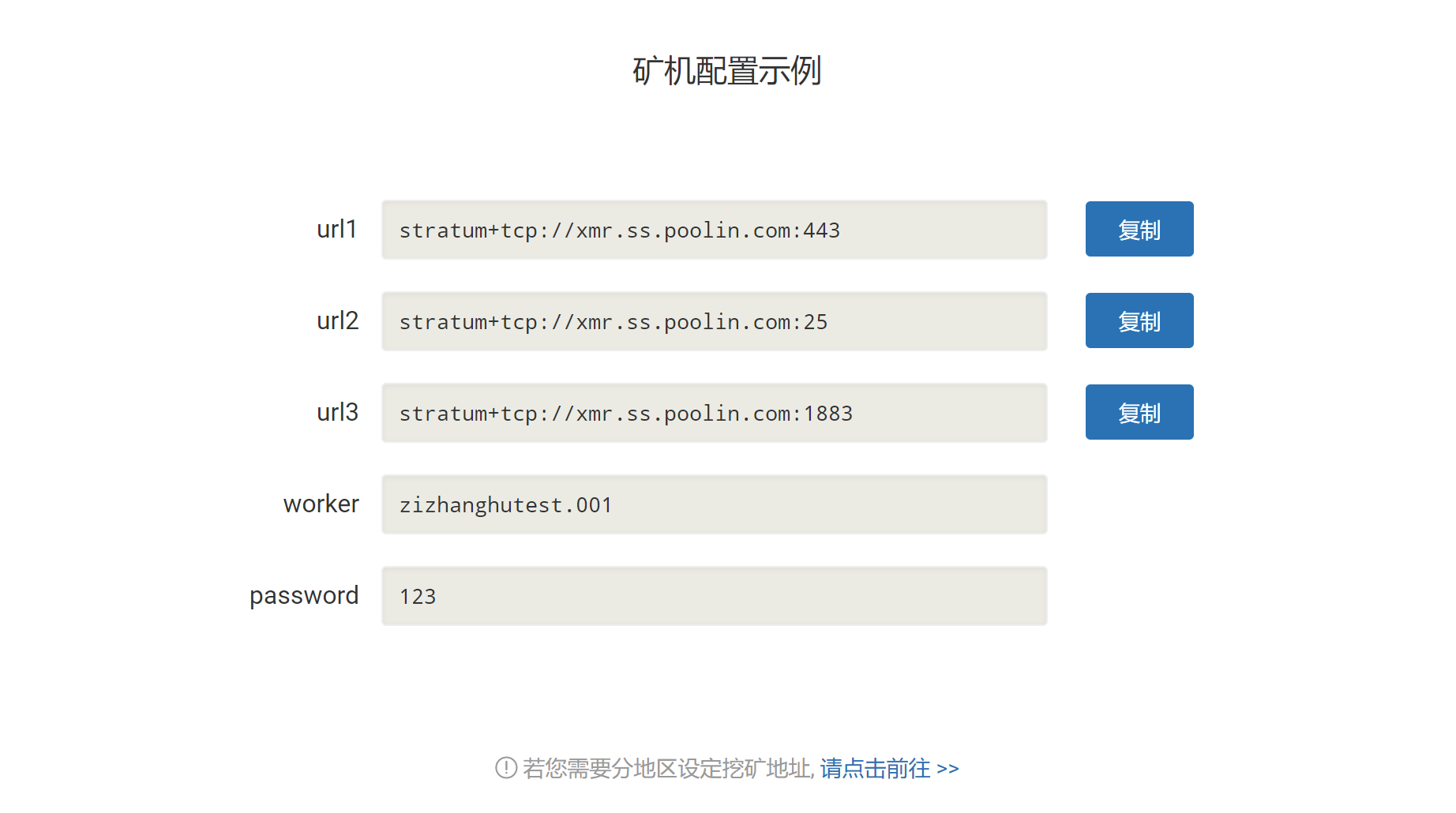 A卡挖矿代码: xmrig-amd.exe -o xmr.ss.poolin.com:443 -u 子账户.矿机编号 -p 123 -v 0 --donate-level=1 参数详解: xmrig-amd.exe 调用相同文件夹内,文件名为“xmrig-amd.exe”程序 -o 矿池地址和端口号,默认矿池为:xmr.ss.poolin.com:443 -u 子账户和矿机ID,需要用一个英文句号“.”隔开 5.确认挖矿状态。矿工可以在矿机后台或者矿池后台查看挖矿状态。在矿池后台,您可以更直观的查看到实时算力,矿工数量,收益等相关信息,如下图。