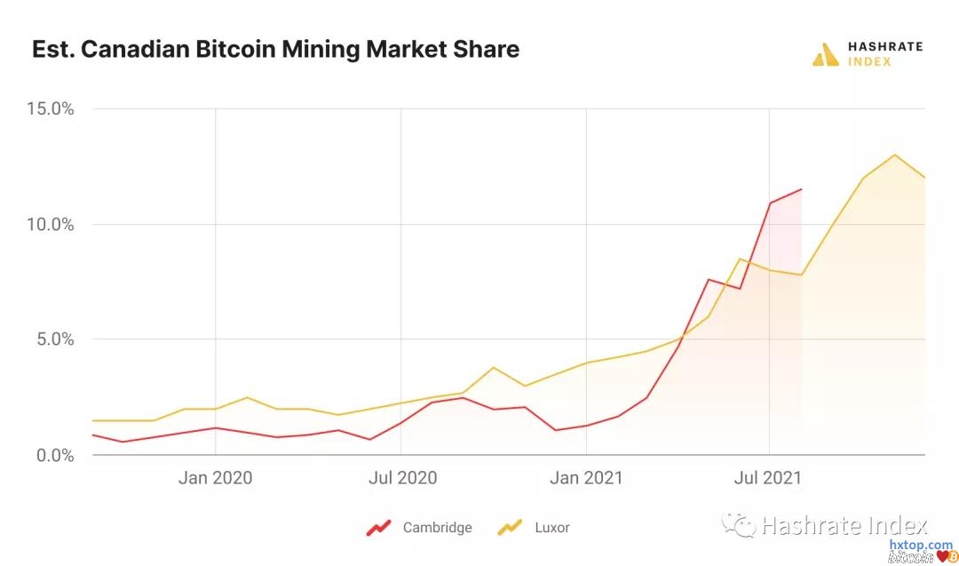 图一:Luxor和Cambridge对于加拿大比特币挖矿业的市场份额预估图