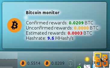 有个Bitcoin Monitor可以监控集体挖矿(mining pool)中Bitcoin 程序(被称为“挖矿机”或矿工 miners)的情况。 这里还有款 Bitcoin Rate,显示 Mt.Gox 上的比特币汇率变化。 点击下载以上两个软件(程序包里) |