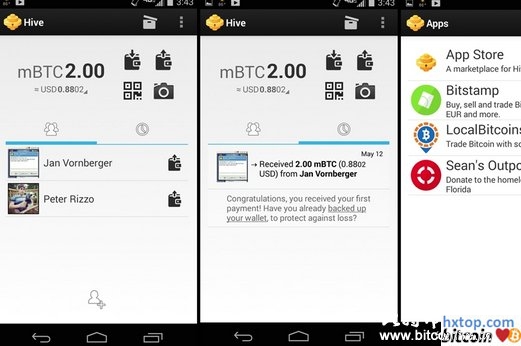 比特币钱包开发团队Hive发布了一款安卓版的比特币钱包APP,具备一些独特性能,其中之一是钱包内能够支持第三方比特币APP,就像一个应用程序商店。本次发布的是测试版本。 |