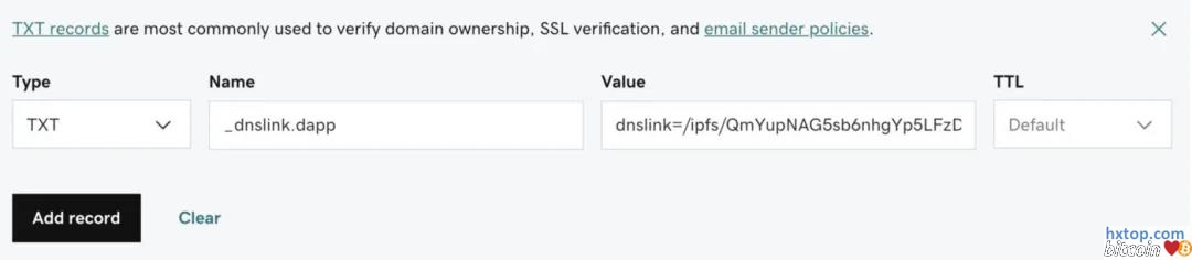 步骤2:要将一个域连接到IPFS文档,我们需要创建2个DNS条目: