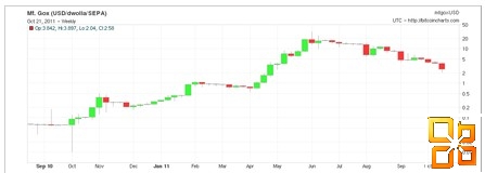 这里是一个bitcoin在bitcoin图表10分钟版本的价格行动的最后几天的审查: 作为在用户部分的预测,bitcoin价格履行这一预测几乎100%的准确度(前价格触及这些值,在图表中箭头绘制)。我们将继续提供短期向用户发出警报。 许多新闻,包括了一些,我认为有关缔结bitcoin泡沫已经破灭。虽然事实上,bitcoin价格自2011年6月的峰值下降严重,很多人都是短视时,仅在过去4个月的表现。 Bitcoin图表不看像一个泡沫时的全貌:自交易开始。 Bitcoin价格上涨指数.