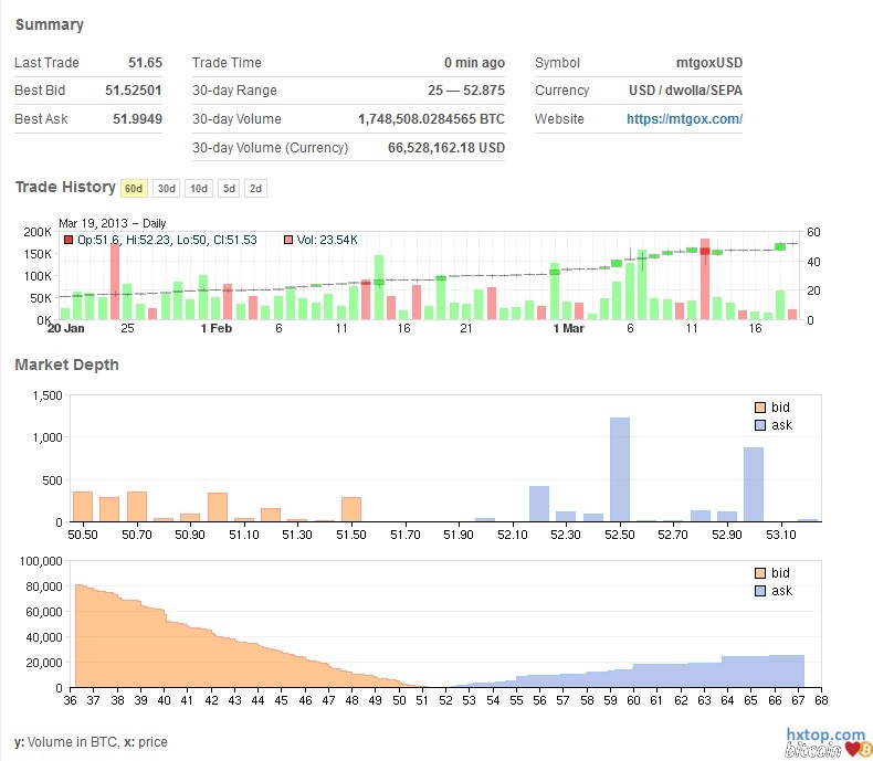 一个重要的心理防线已被突破, 每 Bitcoin 价格已突破 $50, 一度升至 $52, 也是比特币历史上的最高值. 这已经超出了很多人的预期, 前几星期在 $40 多时人们还在谈论 Bitcoin 价格是否已经到达了顶点, 而现在只有未来还能上升多高仍不清楚, 一些人分析能达到 1 BTC 能兑 $100.