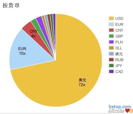 全球比特币交易量分布图[按市场按货币]