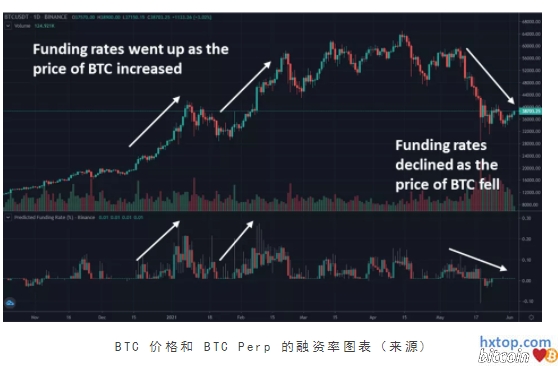本文将介绍加密货币中一些常用的指标,以及如何用它们来评估加密货币市场中参与者的兴趣/情绪水平。 1资金费率如果你以前尝试过通过交易所的永续合约玩杠杆,你会看到一个 "资金利率 "的数字,通常在页面的顶部。 资金利率是定期支付的,以百分比显示,通常以8小时利率报价,根据现货价格和永续合约市场之间的差异支付给多头或空头交易者。 永续合约("Perp")是一种没有到期日(没有结算日期)的期货合约,使其类似于现货市场的交易——因此称为 "永续合约"。交易者使用这些合约来获得特定代币的杠杆敞口,因为他们只需要提供合约总价值的一小部分作为抵押。 与传统的期货合约不同,期货价格最终会在结算时与合约价格趋同,永续合约利用资金利率来确保永续合约价格和现货价格定期趋同。 理解资金利率的另一个简单方法是,把它视为向套利者支付的款项,以确保perp价格跟踪标的现货价格(支付两个价格之间的差额)。 当波动性较大时,perp价格可能会与标的现货价格相背离。 根据背离的方向和范围,资金利率可以是正的或负的。 ➕当perp价格高于现货价格(即contango)时,会出现正的资金利率——参与者看涨,做多的交易者将不得不为空头支付费用。 ➖当 perp 价格低于现货价格(即backwardation)——参与者看跌,做空的交易者将不得不为多头头寸付费。 资金利率一般由两部分组成:利率和溢价。每个融资区间(通常每8小时)的利率通常固定为0.01%,而溢价则取决于perp价格和现货价格之间的差异(如上所述)。 由于每个区间的利率固定为0.01%,0.01%往往被视为 "市场中性 "的融资利率。从这个角度看,资金利率可以作为衡量某项资产过热或超卖程度的标准。 那么,它们与市场情绪的关联性如何?资金利率往往与标的资产的总体趋势保持一致,即资金利率趋于正值,并随着标的资产价格的上升而越来越高。