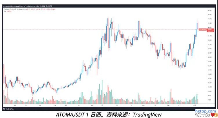 区块链网络互操作性正在成为2022年加密货币生态的主要议题之一。新用户正在继续进入不断增长的加密世界,而新生的和已建立的项目都在寻找最能满足其协议和社区需求的链。 由于专注于促进独立网络之间的通信,2022年开局看涨的一个项目是Cosmos(ATOM)。这个项目自称是“区块链的互联网”,旨在促进互联的去中心化经济的发展。 来自Cointelegraph Markets Pro和TradingView的数据显示,自12月30日创下25.06美元的低点以来,ATOM的价格已经反弹了75%,在1月4日创下43.98美元的日高,其24小时交易量激增到25.4亿美元。