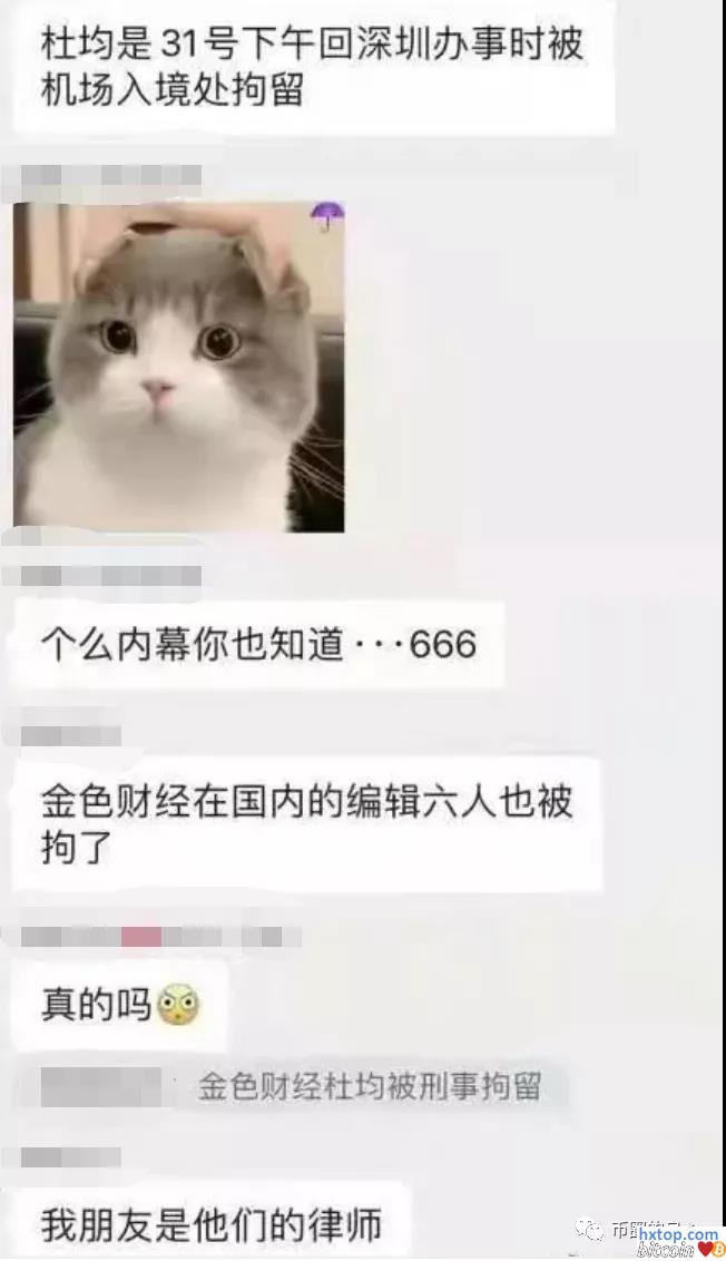两起事件的叠加,造成了今天的局面。 就这加起来,才跌了7个点,说明比特币还是挺扛跌的。 也有人说今年要金融危机了,好日子到头了,但从我个人角度而言,我巴不得资产大幅缩水,行情从来便宜筹码我高兴还来不及。 真要是再有3800的冰糖橙和100姨太,我特么卖房梭哈,用实际行动告诉你们,什么叫梭哈是一种智慧。 金融市场有高波动性和周期性,但从长期来看,数字货币已经成为了不可逆的潮流,既然在正确的方向上,有什么好慌的,像我们这种All In Ccrypoto的,早就无视这种波动了。 最后说个小新闻,有人传杜均回国的时候在深圳被摁着了,金色财经的编辑也被摁住了,一共六个人。