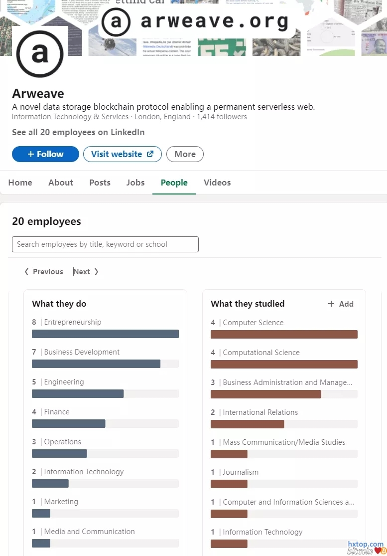 ▌2.4.团队情况根据Arweave的Linkedin显示,该团队目前有20人,在业内属于非常精简的团队规模。大部分团队成员位于欧洲柏林,岗位中BD占比最高,其次是工程师。