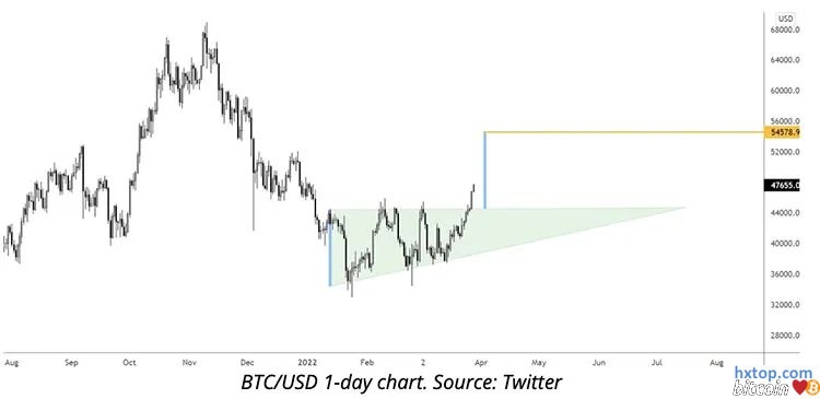 以下是一些市场分析师对比特币的最新走势的看法,以及随着看涨言论继续聚集的势头,接下来可能出现的情况。 52,000美元是下一个目标 分析师、推特用户“Nunya Bizniz”提供了对BTC可能走向的看法,他发布了以下图表,概述了超过54,500美元的可能动向。