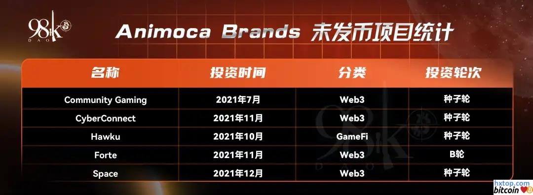 以下统计为Animoca Brands已投资但未发币项目: