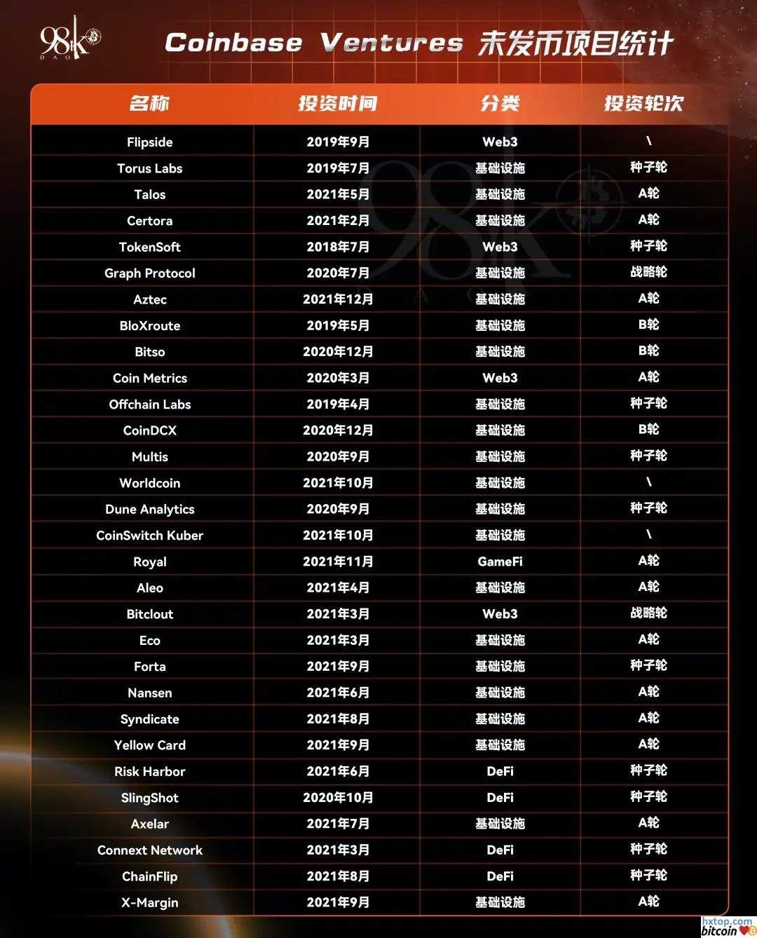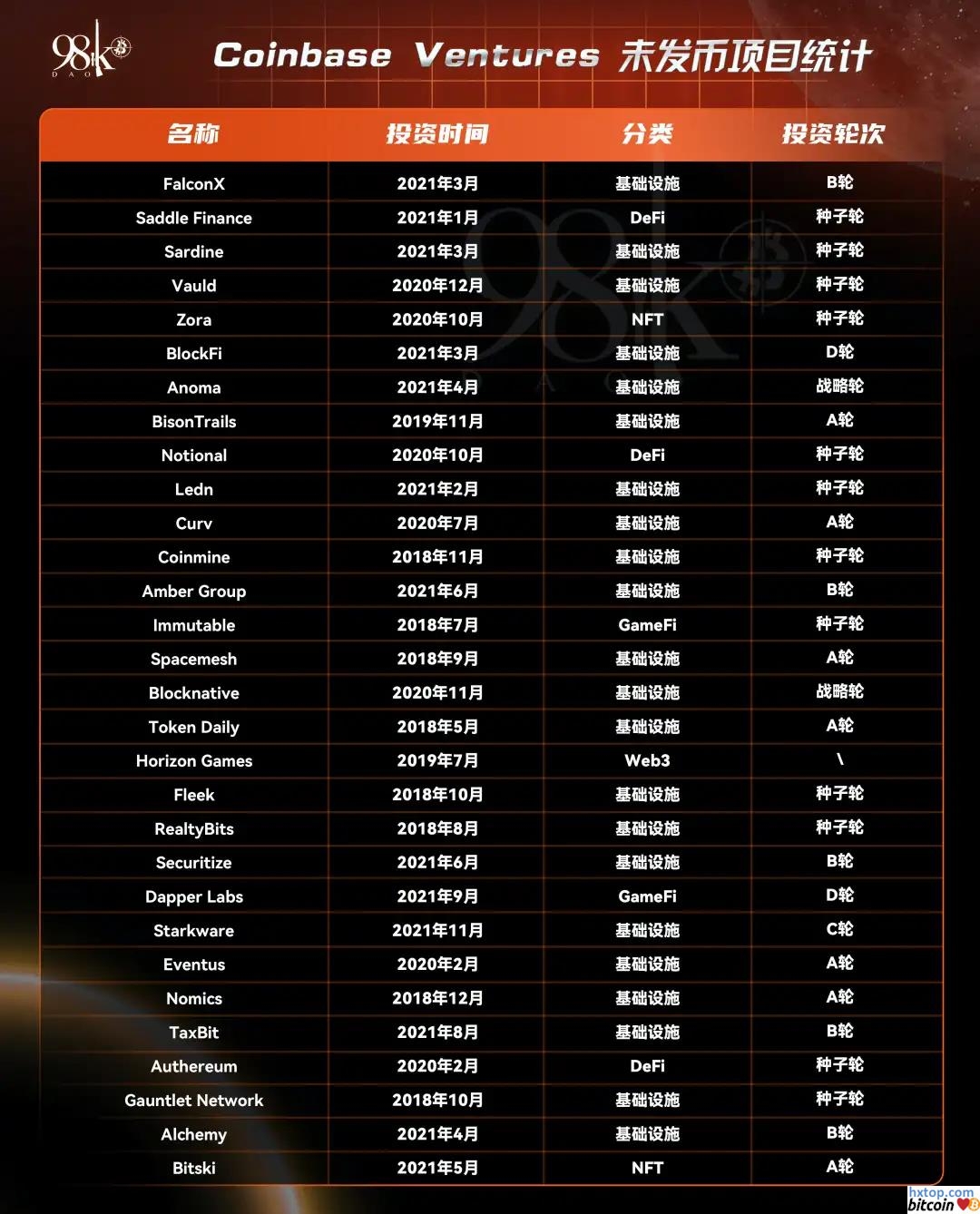 以下统计为Coinbase Ventures已投资但未发币项目: