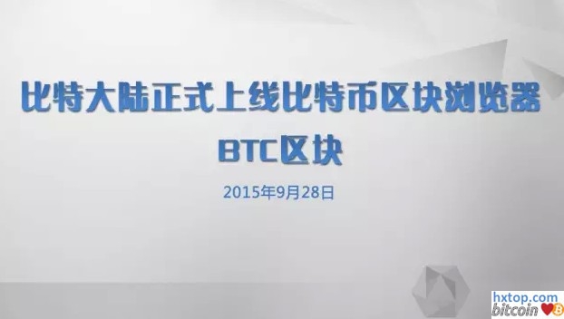 2015年9月28日, BTC区块(https://chain.btc.com)正式上线。BTC区块是比特大陆旗下区块浏览器产品,完全自主研发,拥有较为完善的数据查询功能及API查询服务。