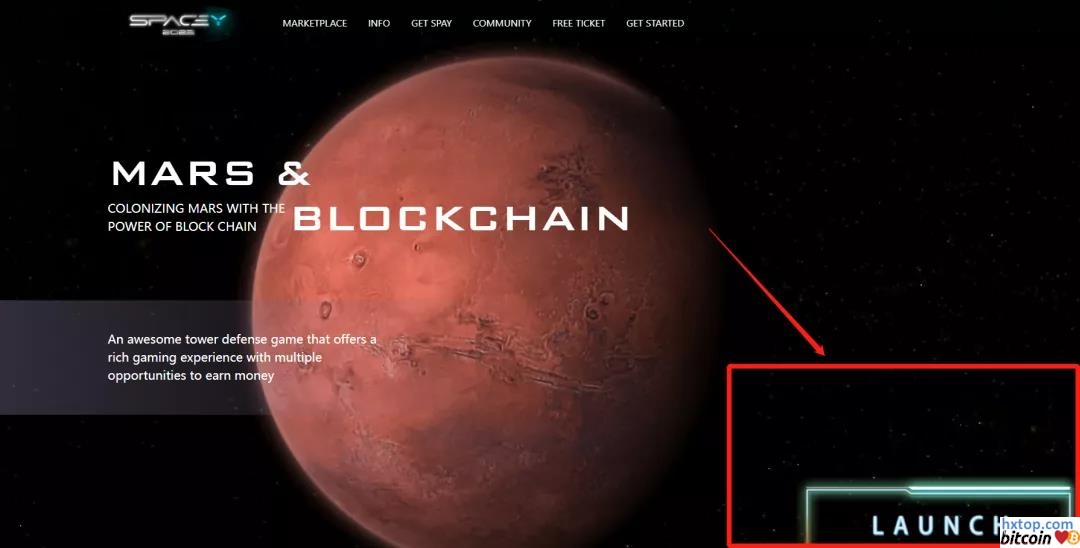 官网 | https://spacey2025.com 推特 | https://twitter.com/spacey2025 电报全球 | https://t.me/Spacey2025 电报中文 | http://t.me/SpaceY2025Chinesecommunity Medium | https://medium.com/@spacey2025 Discord | https://discord.com/invite/cUeNS8UzGW SpaceY 2025目前正在公测,等正式服上线后游戏代币MetaMars 代币将会上市,玩家可以将M币用于升级炮塔,也可以将M币提出来去市场兑换成U打金。 1.登录官网https://spacey2025.com/点击右下角的LAUNCH。