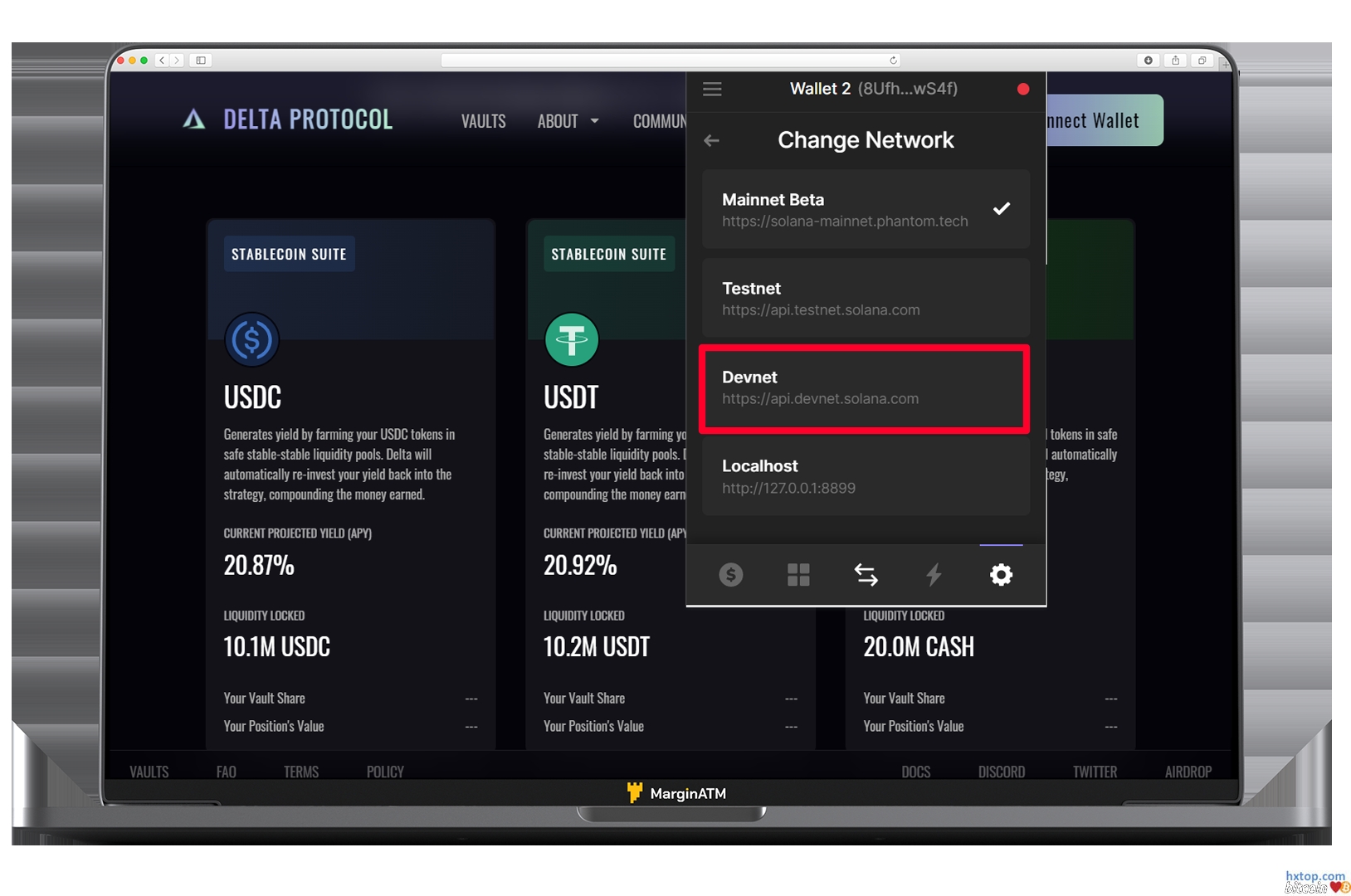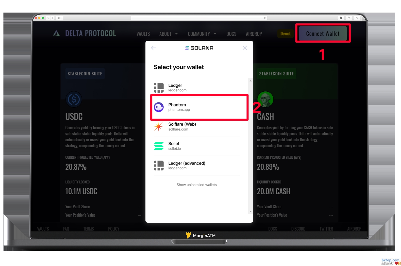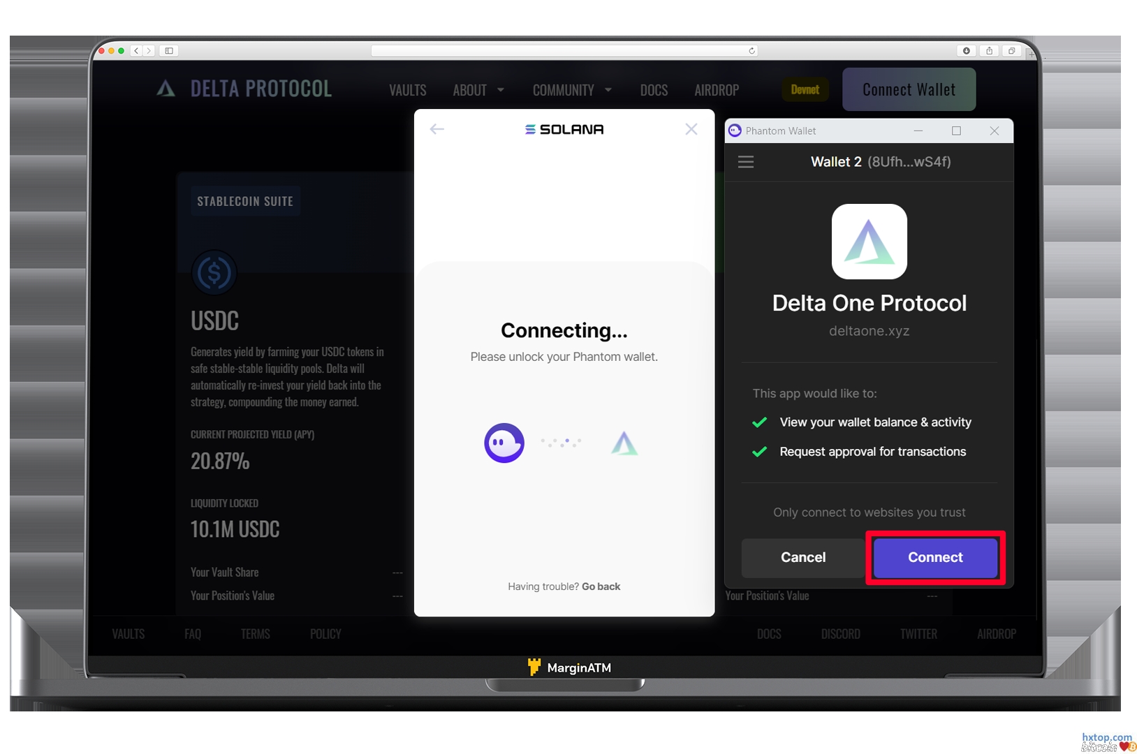 第 4 步:将 Phantom 钱包连接到 Delta 协议: