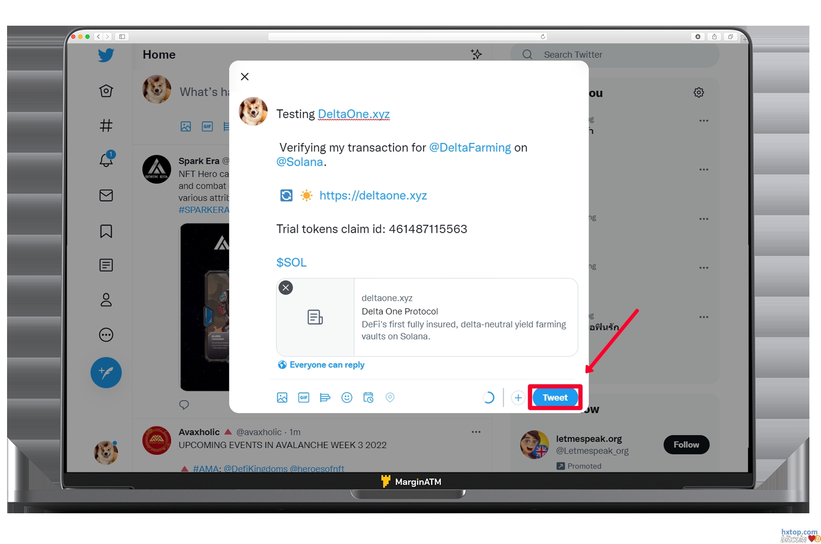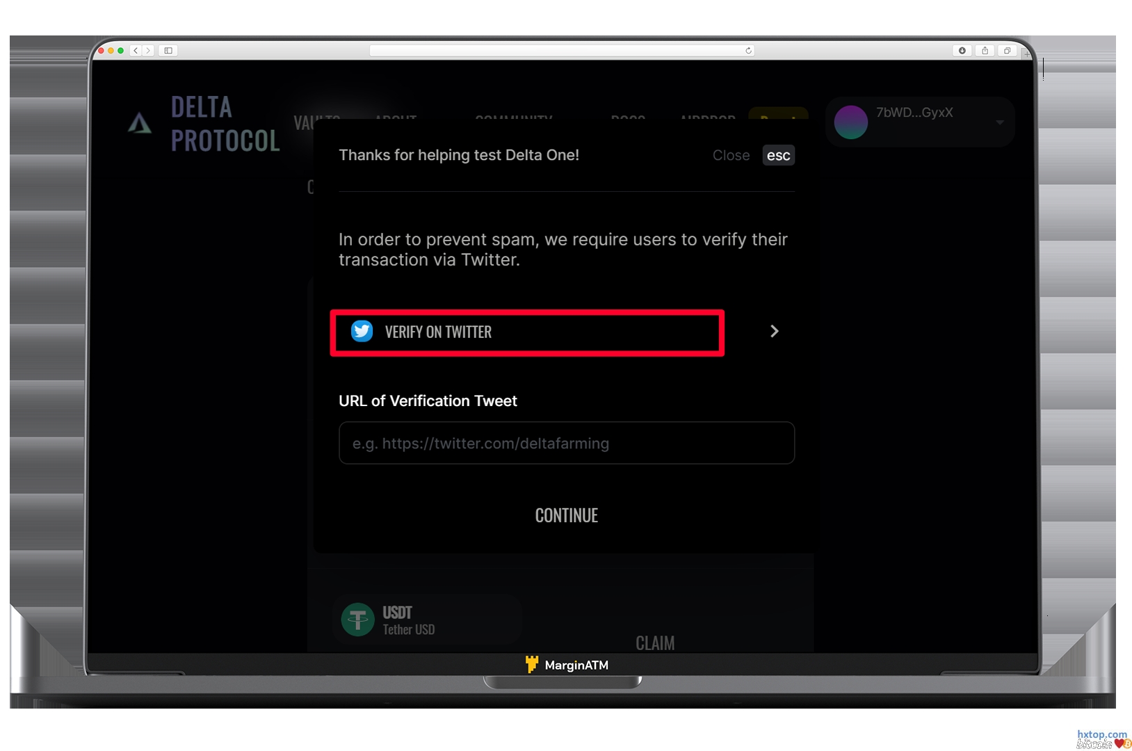 第 5 步:获取测试网令牌。在这里,Delta Protocol 将要求我做一个关于项目的推文以获取测试网通证的小任务
