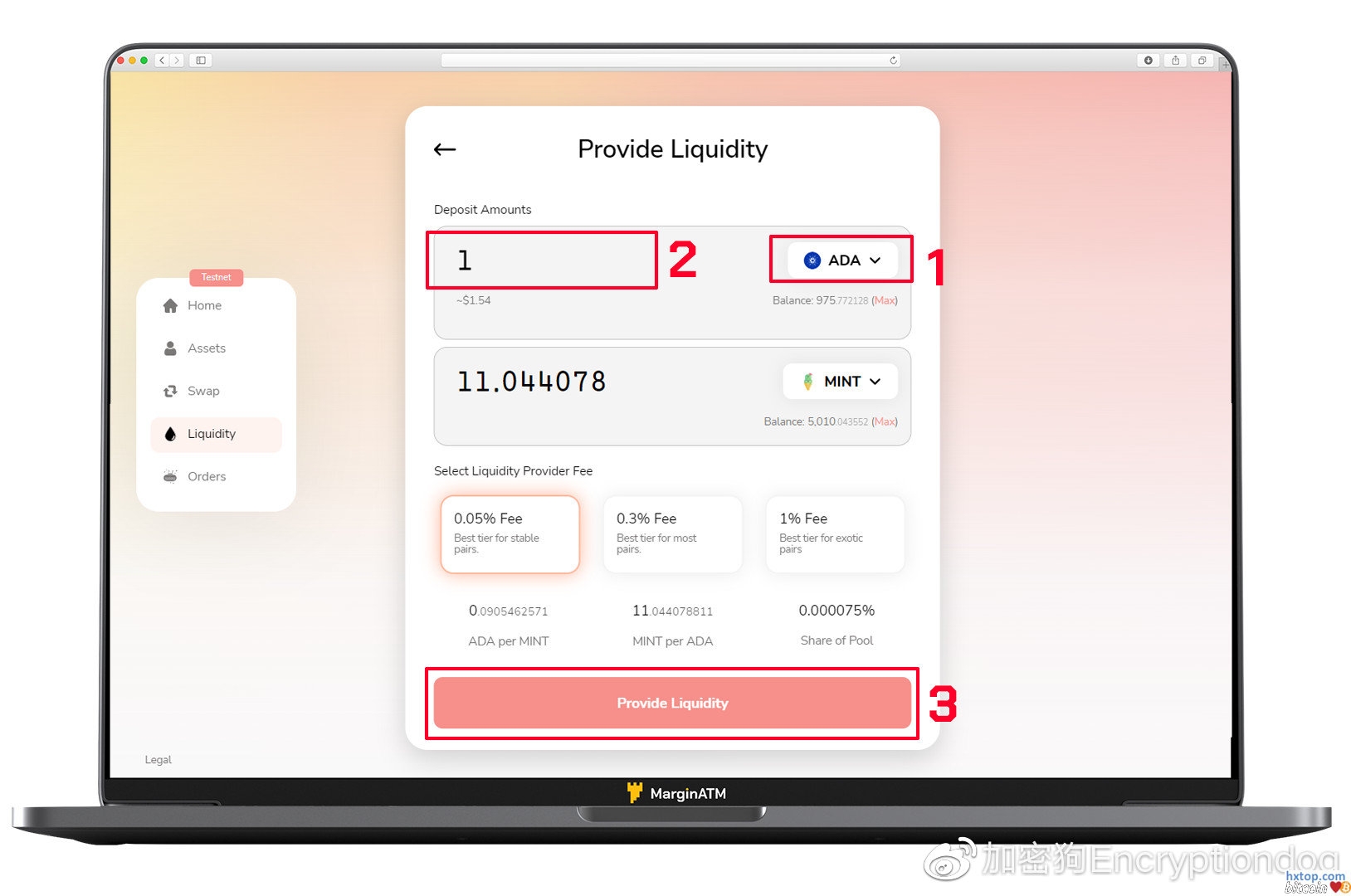 :选择要创建流动性的交易对,并输入要添加的通证数量,然后选择提供流动性
