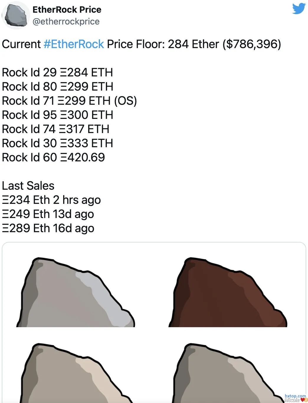 CyberPigs™是10000个猪角色的集合。现在,假设Cyberpig™已经征服了地球,甚至使用最初由人类开发的基因改造技术来进一步提高自己!这是一个奇怪的NFT——但CryptoPunks在他们的时代也是如此。顺便说一下,所有的猪都生活在以太坊区块链上。 World of WalrusWorld of Walrus 的NFT 可能是这个列表中最神秘的NFT项目。几乎没有任何关于该NFT的信息,只有100个World of Walrus NFT存在。因此,该系列和EtherRocks一样罕见,EtherRocks是一个传奇的NFT,单个NFT的售价超过100万美元。下面可以看到一些EtherRocks和石头目前的价格: