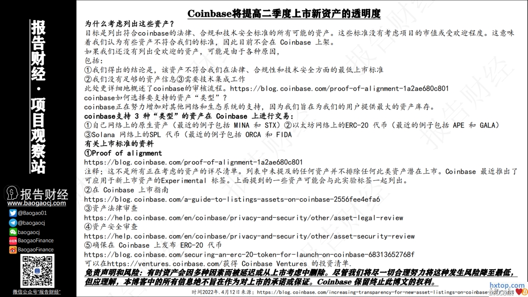 原链接 时间2022年.4月12日来源;https://blog.coinbase.com/increasing-transparency-for-new-asset-listings-on-coinbase-e06f2edb095e |