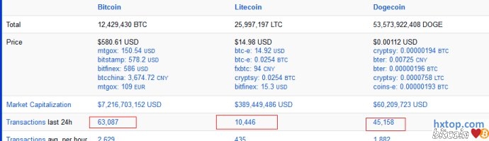 这可以证明:“狗币blockchain的增大与出块时间无关。” 而 blockchain的增大取决于一个因素,就是交易量(Transactions)的多少。这里有数据可查24小时交易量。