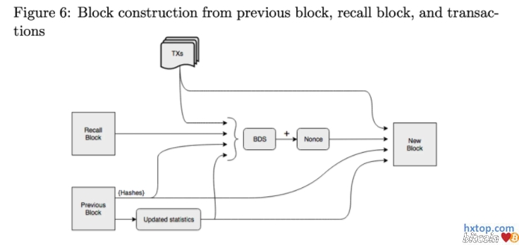每一轮 PoW 算随机数都跟某个过去的区块 (这里叫recall block—回忆块) 有关,只有存储了回忆块的矿工才有资格参与 PoW 算随机数。