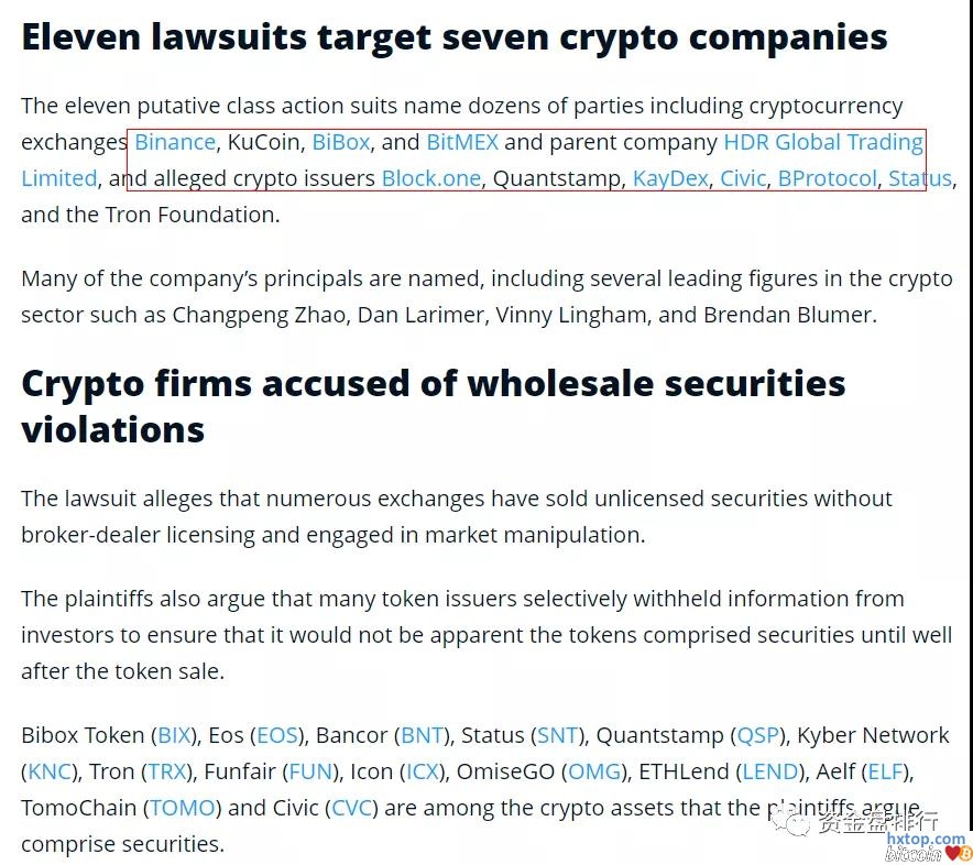 在2020年4月,币安因涉嫌发行非法证券和操控市场,也被纽约联邦法院提起11起诉讼。