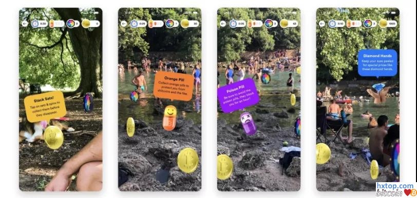 3、Niantic:合作型试探 2016年夏天,一款名为Pokemon Go的游戏在全球赢得无数下载。2021年11月,其背后的一家制作公司开始试探区块链游戏。 11月24日,加密借记卡公司 Fold 宣布与Pokemon Go的开发团队、AR公司 Niantic 共同制作了一款增强现实游戏“Fold AR”。 Fold AR游戏是以Pokemon Go为模板、以加密货币为主题的玩赚游戏,模拟比特币的“挖矿”行为。游戏中的主要任务是把“捕捉可爱的怪物”换成寻找二进制代码的立方体,并像挖矿一样点击它们,直至显示出奖品。每十分钟玩家周围的某个地方会出现一个新区块,反映了真实的比特币挖矿速度。奖励将以 Satoshis 面额(比特币的最小单位)的比特币发放。