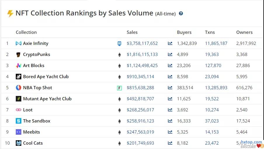 而 Bored Ape Yacht Club 社区的“会玩“还不仅于此,其官方推出的由 BAYC 和 MAYC 共生的手机游戏上线在即,BAYC NFT 未来将不只是作为一个头像类 NFT 而存在,未来我们可能会看到在元宇宙游戏的某个沙滩上不同猴子家族的成员一起坐着喝着椰汁吹着海风。BAYC 持续的高社区热度让 CryptoPunks 的叙事相形失色,近两日 BAYC 的地板价甚至超过了 CryptoPunks。 (3)Art Blocks Curated:最艺术的艺术 NFT 艺术品是艺术家智力劳动成果的结晶,凝聚了艺术家的思想与灵感。而在生成艺术中,艺术品 NFT 不仅仅是创作者的思潮,还是计算机技术对艺术的一种独特的表达方式。Art Blocks 便是这样的一个随机生成艺术品的平台,生成的每一幅艺术画作 NFT,在真正铸造出来之前,就连创作者也只知其轮廓,留白是计算机独特的“思想力”。 Art Blocks Curated 中不同类别的艺术作品 NFT 价格差异会较大,有的动则价值上百 ETH,有的则显得更加平民化,但相较于 CryptoPunks 和 BAYC 这类 NFT,Art Blocks Curated 作品艺术气息更加浓厚,艺术家花费的心血也相对会更多。因此,Art Blocks 团队和社区也更加倾向于让每位艺术家的作品可以得到更长远的发展。 除了在 8 - 9 月期间,Art Blocks Curated 作品销售较多外,在 NFT 整体遇冷的时候,也仍能有一些新的系列 NFT 获得较好的销量,甚至会因为作品铸造而引发 Gas 费用战。目前,在 OpenSea 销量史上,Art Blocks Curated NFT 销量接近 22 万 ETH,排名第四。多次登上苏富比和佳士得传统拍卖行拍卖便是 Art Blocks Curated 价值的最好体现。 (4)LOOT:缺的并非想象力,而是化想象为现实的大众工具 LOOT,一张黑底白字的 “JPG”。每张 “JPG” 只有 8 行字,如同官方介绍一般简洁。LOOT 是随机生成的冒险者装备,并存储在区块链上。统计数字、图像和其他功能被有意省略,供他人解释。8 行字代表了 8 个不同类型的装备。省略掉所有的视觉效果、统计数据和评判指标,目的在于为 LOOT 持有者让其以自己的方式诠释和描绘出他们对于所拥有的 NFT 的理解。 LOOT 诞生于 NFT 市场热度最高的 8 月末,上线不到一周其地板价便被推高上百倍,一度接近 20 ETH。在这一周中,服务于 LOOT 的各种衍生品 NFT 层出不穷,一时间竟有点分不清是蹭热度还是大家都在为这场范式革命而做贡献。然而热潮退去也只用了不到一周,上周还炒得火热,这周竟然有价无市。而各种 LOOT 的衍生品 NFT 大多真的变成了 JPG,不少日销量跌至个位数,甚至 0。截至目前,LOOT 及其衍生品 NFT 的发展大多表现不佳。 LOOT 的上限可以是无穷的,但下限也十分之高。对于开发者或懂编程、美工的用户来说,LOOT 的诞生是福音,可以根据已有的字符一步一步按照自己的想象力绘制出心目中的画像,甚至还能当成是解密,为此制作各式各样的番外;但对于大众而言,空有想象力而没有能够付出的执行力,市场上还缺乏足够有效且便捷的工具支持更多的用户参与。 不过,LOOT 在一定程度上指引了收藏型 NFT 应更多地往实用型 NFT 和游戏化方向发展的趋势,其所蕴含的对于角色、装备的思想是广大游戏用户所喜闻乐见的。而伴随着 Web 3.0 工具的发展以及链游格局的持续推进,有理由相信 LOOT 会回归到大众视野。 (5)Decentraland & The Snadbox:“炒房热”刮进元宇宙 如果再从 NFT 里挑选出最吸引人眼球的标的,元宇宙房地产一定榜上有名。今年下半年后半段,元宇宙浪潮袭来,作为元宇宙中最重要的生产资料之一的地块 NFT 成为了众人哄抢的对象。抢购最火热的元宇宙游戏的地块,就好比在现实中买一个好地段的房子。 Decentraland 和 The Sandbox 是目前加密货币市场最火爆的两大元宇宙游戏,二者的 NFT 销量主要集中在 11 月,目前前者地板价达 3.617ETH,后者地板价达 2.86ETH。 其中购买元宇宙地块 NFT 的用户不乏一些来自圈外的投资,如四大审计公司之一普华永道在 The Sandbox 里购买土地,入驻元宇宙服务客户;知名歌手林俊杰在推特宣布购买了 Decentraland 的三块土地,约花费 78 万人民币。 拥有了一块元宇宙土地,就相当于拥有了在这片土地上的主宰权,可以按照自己的想法打造任何你想要的世界。随着 VR/AR 等技术的发展,元宇宙的叙事还会持续相当长的一段时间,相对稀缺的大热元宇宙游戏中的地块也会变得更加珍贵。 (6)Axie Infinity:链游龙头、NFT 销冠 Axie Infinity 作为一款基于 NFT 的区块链游戏,在 play-to-earn 模式上做到极佳,甚至可以实现让游戏取代工作。自诞生以来,Axie Infinity 在 NFT 销售中达到了 37.58 亿美金,相当于售出了 121 万个 ETH 的资产,这近乎等于 CryptoPunks、Art Blocks 和 Bored Ape Yacht Club 总销量之和。