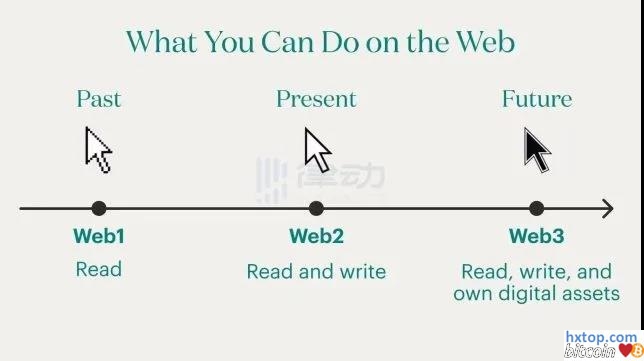 同时,Axie Infinity 也展示出了区块链驱动去中心化游戏的惊人潜力。据 Messari 数据,目前 Axie Infinity 的市值已与传统视频游戏公司已不相上下,在今年 10 月就紧随 Electronic Arts 之后,排到了全球视频游戏公司市值的第五位,同时接近 Ubisoft 市值的 4 倍。 此外,Axie Infinity 的玩家还成立了一个 YGG(Yield Guild Games)的公会,通过众筹、租赁等方式,帮助玩家获得游戏中价格不菲的角色,并指导他们在游戏中更好地发展,来赚取虚拟资产变现。疫情期间,YGG 就组织了大量因失去工作的东南亚当地玩家以此谋生,在游戏中获得了每个月数百美元的收入。 而且,这样的组织正在逐渐演变成去中心化组织「DAO」的形式,也就是元宇宙中主要的社区组织形态。未来每一个游戏,或许承载着不同的用户群体和社区文化,但每一个人都可以使用唯一的身份,在不同游戏间穿梭体验,仿佛在很多平行的虚拟世界间自由跳跃。 Web3 上的元宇宙 从只能使用电脑有线网络联网「冲浪」,到随时随地用手机、平板等智能终端接入,移动互联网时代带来的冲击,令人记忆犹新。眼下,尽管「元宇宙」概念尚未明确,但与下一代 Web3 互联网的联系却日益紧密,人们不断畅想着它的模样,想象着那个没有巨头、没有数据垄断、元宇宙创造的第二人生世界。 此外,加密领域知名投资机构灰度在其《元宇宙 Web3》报告中指出,元宇宙正处于下一代互联⽹进化的前列,将让我们得以一窥互联网的未来,并将之带入到这个年收入可能超过 1 万亿美元的市场,与当今市值约 15 万亿美元的 Web 2 公司展开竞争。 截至目前,互联网的发展分为三个阶段。