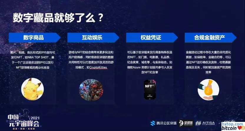 NFT技术还可以应用在更多其他场景中但价值互联网有数字藏品就够了吗?是远远不够,这只是非同质化通证技术落地非常初期的表现、是第一阶段,后面还有很多场景可以让我们做。