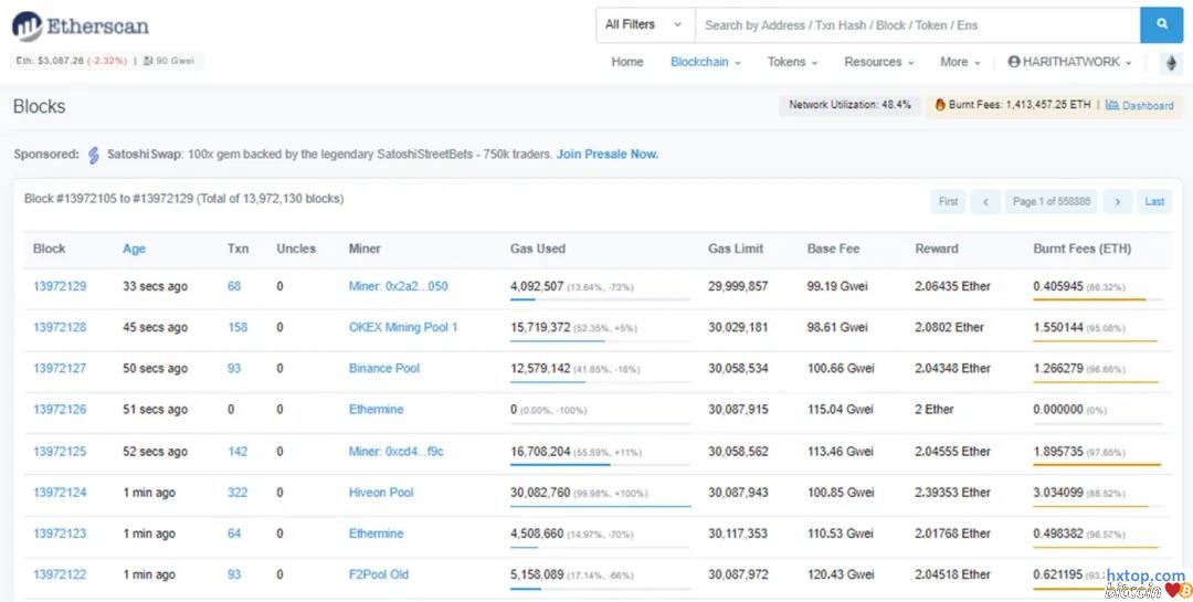 Etherscan Blocks页面
