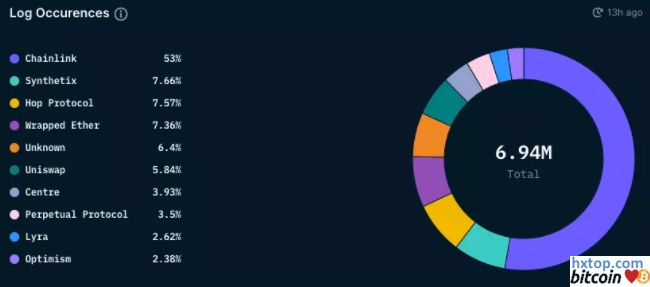 Arbitrum 的每日交易数量 你如何与Optimism互动?Uniswap 和 Synthetix 等大型基于以太坊的 dApp 已经部署在链上并且可以正常运行。该链拥有一个不断发展的原生生态系统,其中包含 Rubicon Finance 等 DeFi 项目和一个 NFT 市场 Quixotic,该项目已启动并正在运行。Optimism 上出现了一些 NFT 收藏品,前 3 名是 OptiPunk(CryptoPunks 衍生品)、Optimistic Bunnies 和 OldEnglish。目前最流行的 dApp 是 DeFi dApp,日志出现次数排名前 10 的应用中有 4 个是 DeFi 应用。日志发生次数是实体智能合约成功执行的次数。 在 Optimism 上记录 dApp 的出现