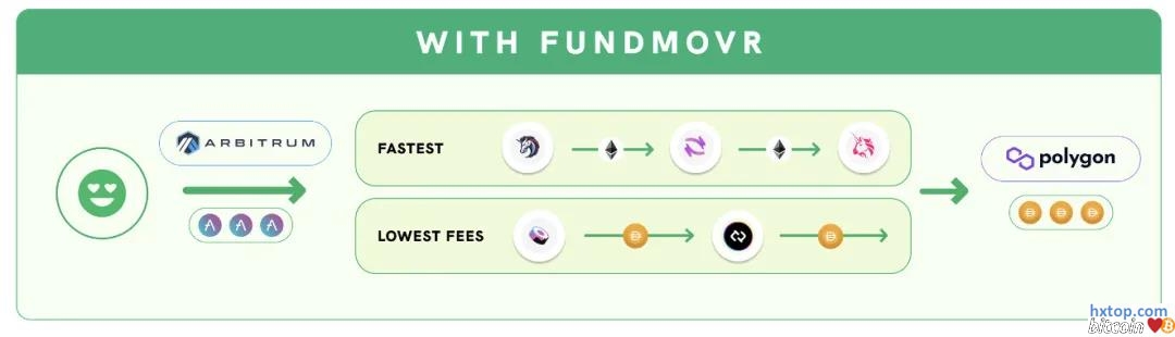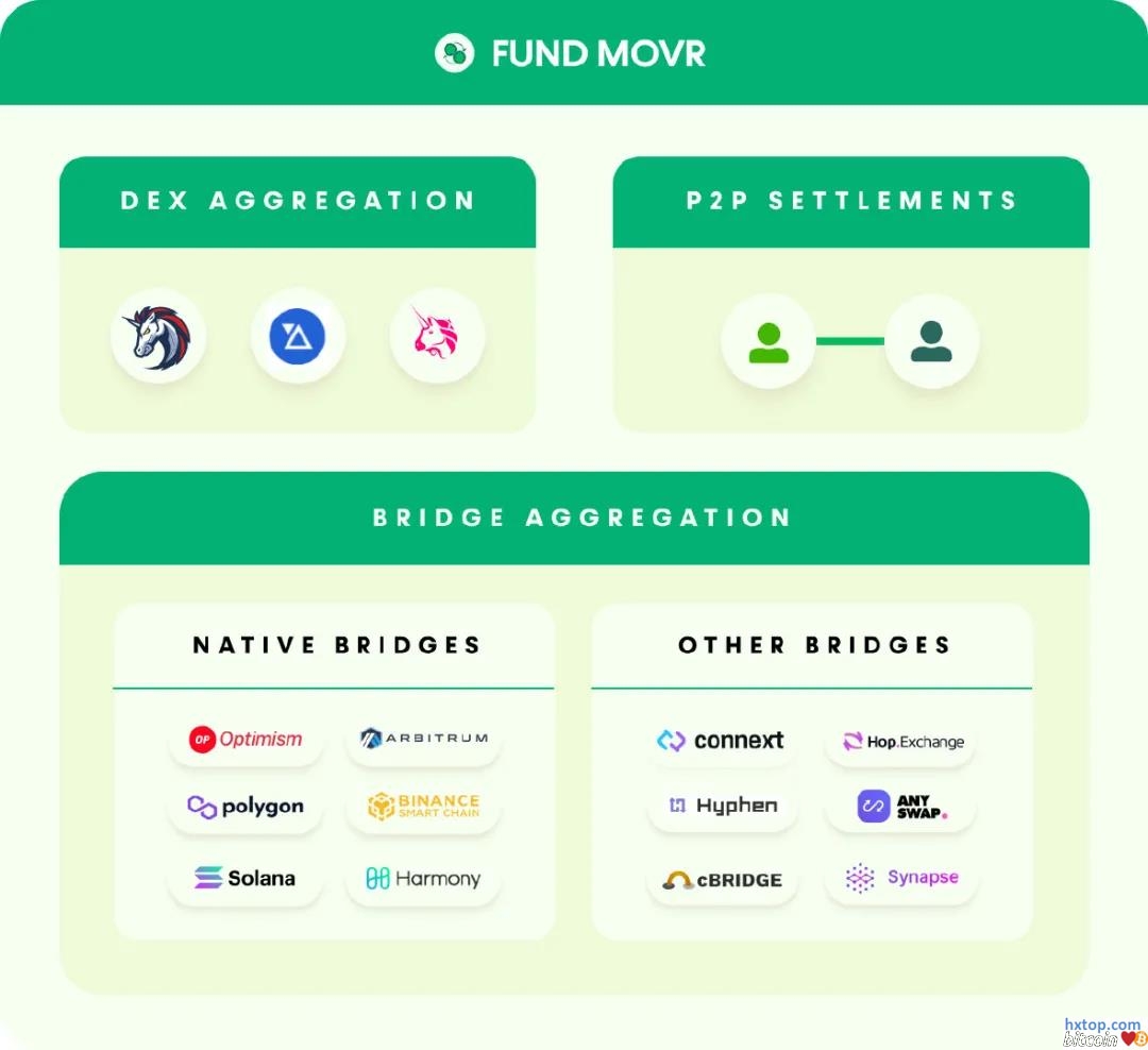 FundMovr 架构 开发者的 FundMovr随着dApp和用户跨多个链进行交易,桥已经成为任何用户旅程的重要组成部分。因此,dApps和开发人员想要用桥构建自己的用例,为用户提供无缝的用户体验。FundMovr让我们可以通过SDK和API,让开发者更容易做到这一点! 一些开发者可以构建的用例: 应用程序内桥:应用程序可以将FundMovr集成到他们的UI中,允许他们的用户在不离开应用程序界面的情况下进行桥接!开发者可以通过一次整合来支持所有的桥,而应用用户则可以通过最有效的方式获得桥资金。 轻松迁移头寸:像Aave, Instadapp等应用程序可以轻松迁移来自不同链的用户质押头寸。 FundMovr 测试版在过去的几个月里,FundMovr一直在悄悄地进行建设,并且很快就会推出FundMovr测试版。FundMovr已经整合了多个链、桥和DEX聚合器,从第一天起就为用户提供多条路线!! Sources: https://docs.movr.network/fund-movr-sdk/roadmap https://medium.com/movr-network/introducing-fundmovr-seamless-cross-chain-bridging-afc5606f3fb5 |